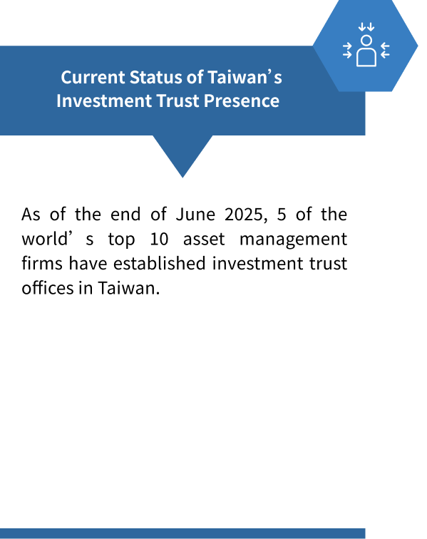 Attract foreign asset management companies to establish regional centers in Taiwan.