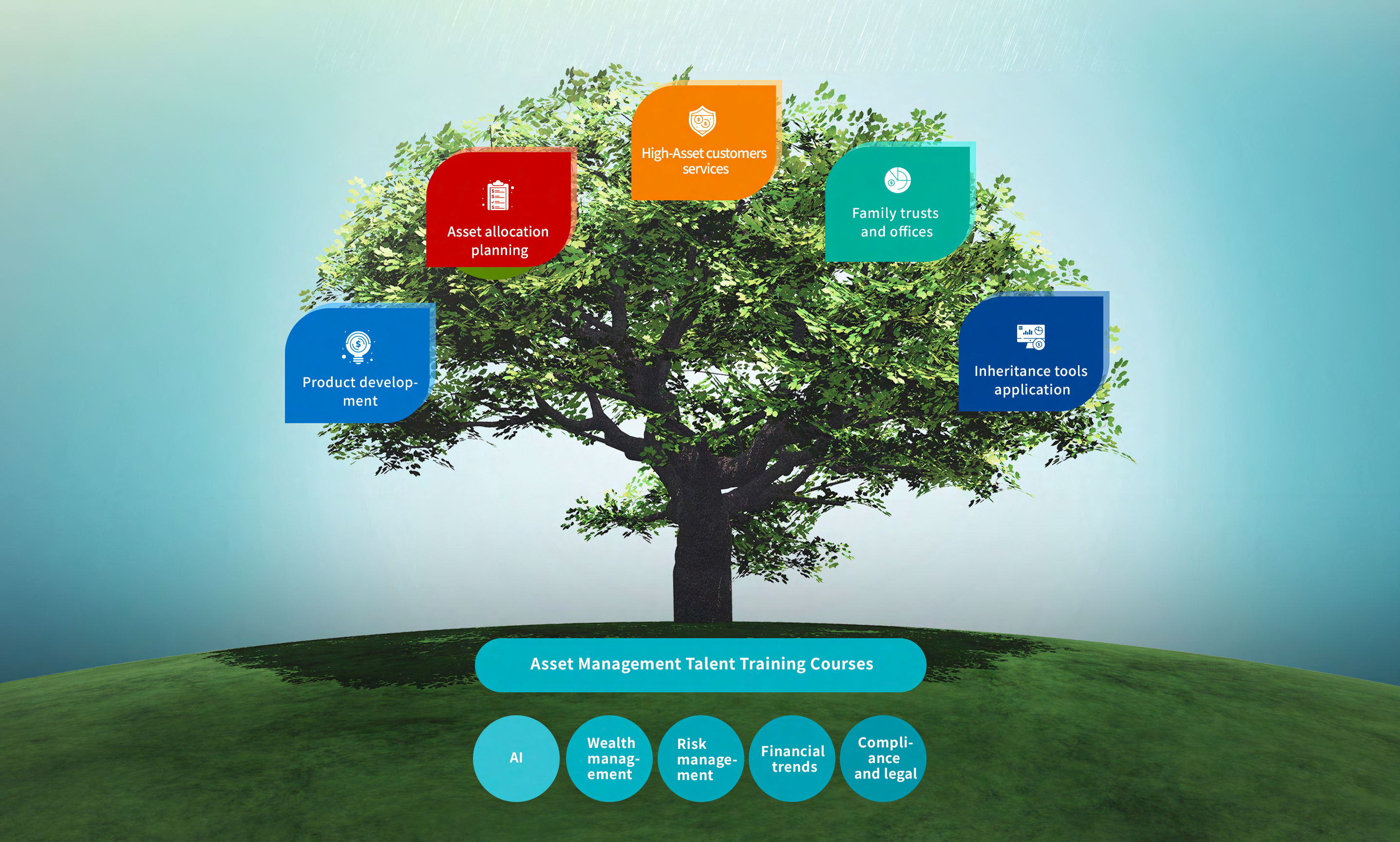 - Plan three key functions and core capabilities courses: Private Banking (Wealth Management), AI, and International Financial Trends.