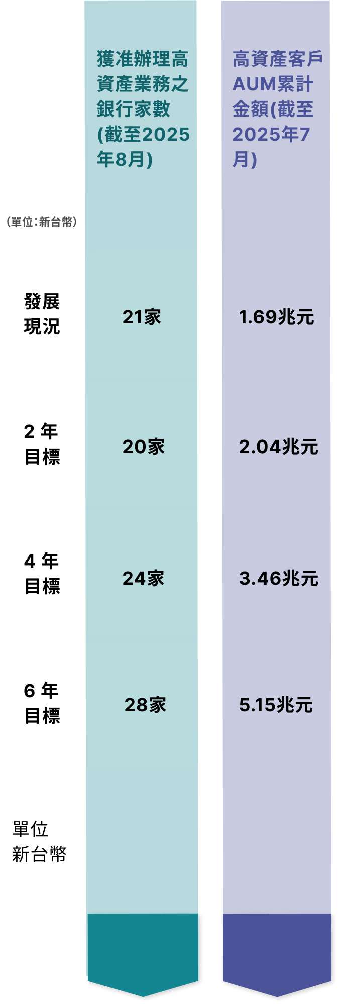 臺灣的高資產客群龐大且資產快速增長。金管會於2020年8月7日發布「銀行辦理高資產客戶適用之金融商品及服務管理辦法」,透過法規鬆綁,放寬銀行對資產達新臺幣1億元以上客戶提供多元商品和諮詢服務的條件,同時提升銀行商品研發能力和專業人才培育,促進財富管理市場發展。